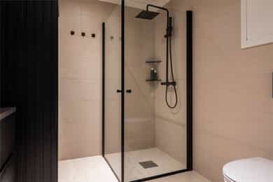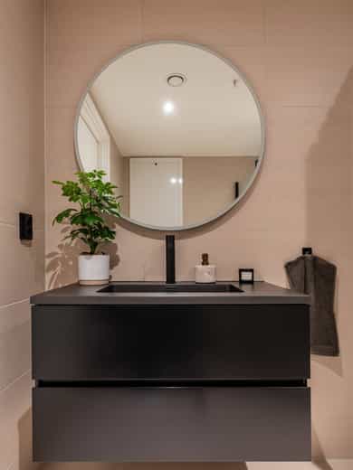 • Montert baderomsinnredning på bad: montert servant, servantskap, dusjsett, dusjvegg og blandebatteri. På WC: montert blandebatteri.