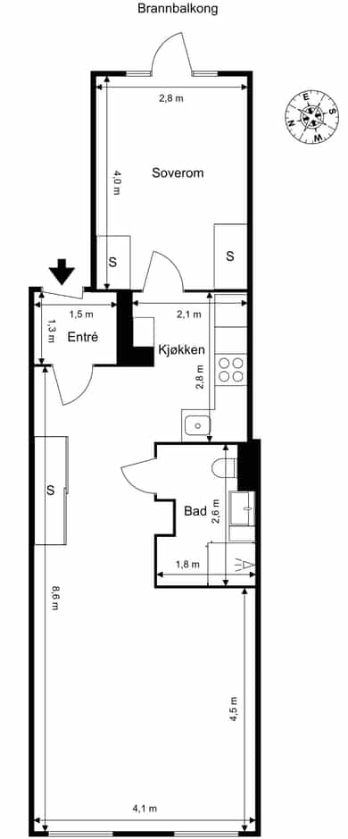 • Skjermet og tilbaketrukket med soverom og brannbalkong mot bakgård