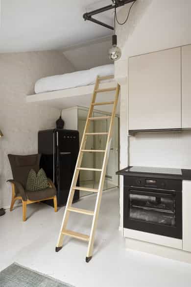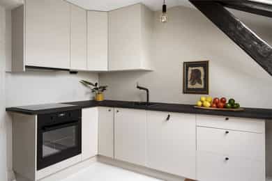 Nydelig og arealeffektiv 1-roms loftsleilighet med praktisk hems! Meget sentral beliggenhet, men rolig gate! IN-ordning