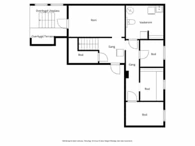 Hjemmet går over to plan og inneholder følgende: Kjeller: Uinnredet kjellerrom, vaskerom, 2 ganger og 5 boder. 1.etasje: Stue, kjøkken, 3 soverom, bad, gang og vindfang.