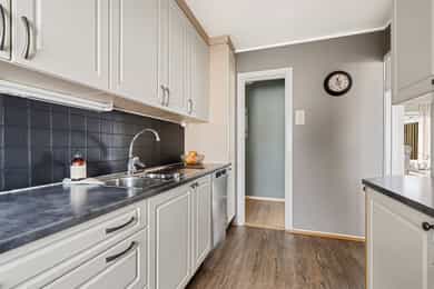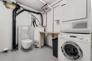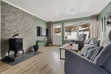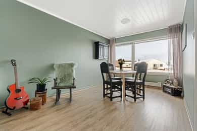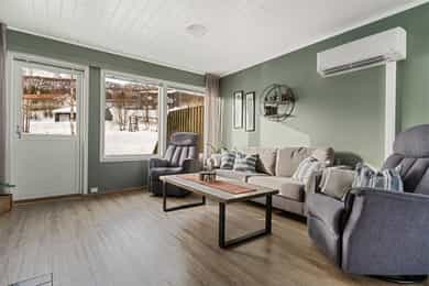 Kommentar fra megler: - Selger opplyser at det ikke er en fungerende styreleder i sameiet og at det ikke praktiseres årsmøte eller at det foreligger budsjett/regnskap for sameiet. Les mer under "sameie" for mer informasjon. - Boligen er estimert fra takstmann å ha byggeår 1965. Plan- og bygningsloven trådte i kraft i 1965 og de kommunale arkivene er ofte mangelfulle fra denne perioden. Les mer under "ferdigattest/midlertidig brukstillatelse". - Selger opplyser om at det er tidvis mye flyaktivitet i området grunnet forsvaret og nærhet til Bardufoss lufthavn. Kjøper må derfor påregne bl. a. støy i forbindelse med dette. Det opplyses om at ingen kan eie mer enn to boligseksjoner i sameiet, jf. eierseksjonsloven § 23. Seksjoner som eies av nærstående eller via firma teller med. Etter lov om eierseksjoner § 31, er sameierne overfor sameiets kreditorer ansvarlige etter sin sameiebrøk. Ved manglende betaling av fellesutgifter har sameiet legalpanterett i den enkelte eierseksjon på inntil 2 ganger folketrygdens grunnbeløp. Kjøper og selger er forpliktet til å undertegne standard kjøpekontrakt utarbeidet av Nordvik i forbindelse med eiendomstransaksjonen. Kjøpekontrakt kan besiktiges hos eiendomsmegler før bud inngis. Kontakt eiendomsmegler for spørsmål. Utdrag fra tilstandsrapport: Tilstanden vurderes med ulike tilstandsgrader: TILSTANDSGRAD 0, TG0: INGEN AVVIK TILSTANDSGRAD 1, TG1: MINDRE ELLER MODERATE AVVIK TILSTANDSGRAD 2, TG2: VESENTLIGE AVVIK TILSTANDSGRAD 3, TG3: STORE ELLER ALVORLIGE AVVIK TILSTANDSGRAD IU, TGIU: IKKE UNDERSØKT/IKKE TILGJENGELIG Følgende har fått TG3 (store eller alvorlige avvik): Nedløp og beslag Vurdering av avvik: Det er ikke montert snøfangere eller takrenner på takoverbygget til kjellerdøren. Nedløp er avsluttet med utkaster over terreng. Det er registrert frostspreng på nedløpsrør. Utettheter øker vannpåkjenningen mot fasader, grunnmur og drenering, noe som reduserer forventet levetid for de underliggende bygningsdelene. Konsekvens/tiltak: Det må monteres snøfangere og takrenner på takoverbygget til kjellerdøren for å hindre snø- og isras, samt sikre forsvarlig bortledning av vann. Nedløpsrør med frostspreng bør utbedres eller skiftes ut, og nedløp bør ledes bort fra grunnmuren for å redusere vannpåkjenning mot fasade, grunnmur og drenering. Manglende tiltak kan føre til økt risiko for vannskader og redusert levetid på bygningsdeler. Kostnadsestimatet er satt til montering av snøfangere. Kostnadsestimat: 20 000 - 100 000 Vaskerom - Generell Vurdering av avvik: Våtrommet må oppgraderes for å tåle normal bruk etter dagens krav. Det er ikke tettesjikt på vegger eller gulv, ved vannpåkjenning er det stor risiko for skader. Sluk er plassert under utslagsvask. Ved inspeksjon i sluk er det påvist at sluken er en eldre støpejernsluk med rustskader, noe som tilsier at ved renovering kan det være vanskelig å dokumentere at nye vinylbelegg eller slukmansjetter kan benyttes opp mot denne sluken. Det kan være nødvendig å skifte sluk ved renovering. Det er gjort. Rommet er ventilert med naturlig ventilasjon via klaffeventil i vegg. Det vegghengt toalettet er ikke ferdigstilt. Det må gjøres oppgradering av våtrommets tettesjikt/membran for at våtrommet skal tåle en normal bruk etter dagens krav (tett våtsone). En samlet TG 3 for rommet er satt med bakgrunn i alder og manglende tetthet i våtsonen på rommet. Ved renovering av rommet må det gjennomføres en helhetlig prosjektering av våtrommet. Konsekvens/tiltak: Manglende oppgradering av våtrommet medfører høy risiko for at konstruksjonene ikke vil tåle vanlig bruk av vann eller lekkasjer. Dette kan føre til fuktskader på tilstøtende konstruksjoner. Det frarådes at gulv og vegger utsettes for vann slik de fremstår i dag. Manglende oppgradering av våtrommet medfører høy risiko for at konstruksjonene ikke vil tåle vanlig bruk av vann eller lekkasjer. Dette kan føre til fuktskader på tilstøtende konstruksjoner. Rommet må oppgraderes/renoveres før daglig bruk for å redusere risiko og omfang av skader. Ved å utsette gulv og vegger for vann kan det oppstå sopp og råteskader i skjulte deler av konstruksjonen. Kostnadsestimatet er satt til full oppgradering av badet. Kostnadene kan variere ut fra valgte løsninger og materialer. Følgende har fått TG2 (avvik som kan kreve tiltak): Taktekking Vurdering av avvik: Taktekking er snødekt på befaringsdagen, noe som begrenser muligheten for fullstendig visuell kontroll. Mer enn halvparten av forventet brukstid er passert for både taktekking og undertak, noe som medfører økt risiko for slitasje og behov for vedlikehold eller utskiftning. Eier opplyser om falmet maling på taket. Konsekvens/tiltak: Det anbefales å gjennomføre ny inspeksjon av taket når det er snøfritt for å få en fullstendig vurdering av tilstanden. Siden mer enn halvparten av forventet brukstid er passert for både taktekking og undertak, bør det påregnes økt behov for vedlikehold eller utskiftning for å unngå lekkasjer og følgeskader på bygningen. Falmet maling på taket bør utbedres for å opprettholde beskyttelsen mot korrosjon og forlenge takets levetid. Veggkonstruksjon vurdering av avvik: Det er ikke montert musesperre der det er stående trepanel. Kledningen er ikke tilstrekkelig ventilert der det er liggende trepanel. Kledningen er værslitt og har sprekker. Konsekvens/tiltak: Det må monteres musesperre der det er stående trepanel for å hindre at gnagere kommer inn i konstruksjonen. Ventilasjonen bak kledningen bør forbedres der det er liggende trepanel for å sikre tilstrekkelig uttørking og redusere risiko for fuktskader. Værslitt kledning med sprekker bør utbedres eller skiftes for å forhindre ytterligere forringelse og redusere risiko for råte og vanninntrengning. Takkonstruksjon/Loft Vurdering av avvik: Kaldloftet er inspisert fra tilgjengelige gulvet loftsluken. Det var ikke tilgang til hel