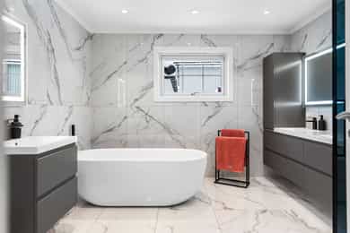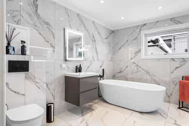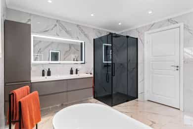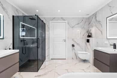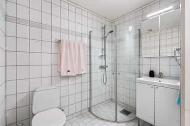 Bad 1.etg. -helrenovert, nytt gulv med varmekabler, fliser 120x60 på vegger/gulv