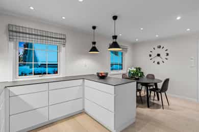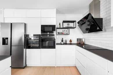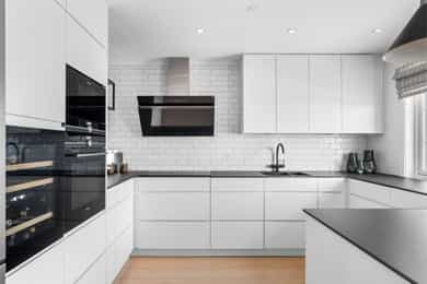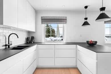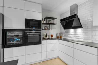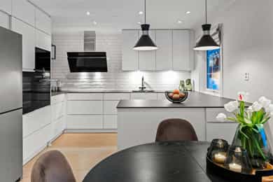 Kjøkken – helrenovering, revet gammelt, montert nytt Kvik-kjøkken, ny parkett gulv