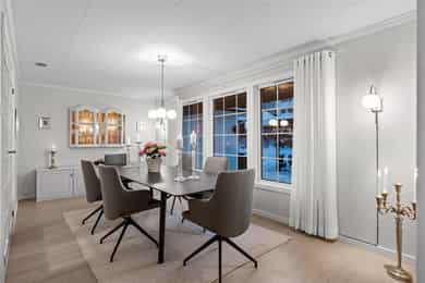 8 990 000,- (Prisantydning) Omkostninger: 224 750,- (Dokumentavgift) 290,- (Pantattest kjøper) 545,- (Tinglyst pantedokument) 545,- (Tinglyst skjøte) 19 700,- (Boligkjøperpakke* (valgfritt)) -------------------------------------------------------- 226 130,- (Omkostninger totalt (uten Boligkjøperpakke)) 245 830,- (Omkostninger totalt (med Boligkjøperpakke)) -------------------------------------------------------- 9 216 130,- (Totalpris inkl. omkostninger (uten Boligkjøperpakke)) 9 235 830,- (Totalpris inkl. omkostninger (med Boligkjøperpakke)) -------------------------------------------------------- NB: Regnestykket forutsetter at det kun tinglyses ett pantedokument og at eiendommen selges til prisantydning. Dokumentavgiften er 2,5% av salgssummen, inkl. evt. fellesgjeld. Det tas forbehold om endringer i offentlige avgifter/gebyrer.