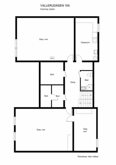 BRA-i: 136 kvm. Gang, vaskerom, bad, 3 disp. rom og 3 boder.