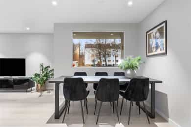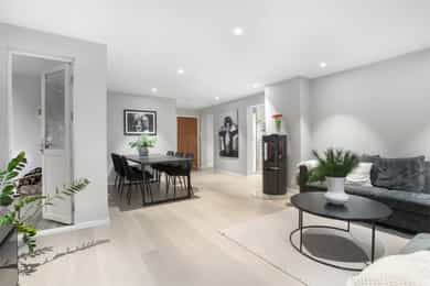 Nordvik eiendomsmegling har gleden av å presentere en hyggelig tre roms leilighet på Slemdal/Holmen. Boligen ligger i et flott område like ved nye Holmen skole, gressbanen, Holmendammen og Holmenkollen. Boligen ligger i høy 1.etg. og inneholder følgende: - Entré - Gang - Bad/WC - Soverom I - Soverom II - Stue - Kjøkken - Vestv. balkong på ca.5kvm. I tillegg disponerer boligen: - egen garasje i fellesgarasjerekke - to boder Høydepunkter med boligen og området: - HTH kjøkken, fra april ´22 - Gulv og vegger fra april ´22 - Downlights i himling, nytt i april `22 - Bad/WC, fra 2016 - El-anlegg delvisoppgradert april `22 - Alt arbeid er utført av fagfolk i ´22 - Lave fellesutg. - Rent brennende peis, ny i april ´22 - Gjennomgående - Ingen TG3 - Kort vei til bl.a.: barnehager, skoler, butikker
