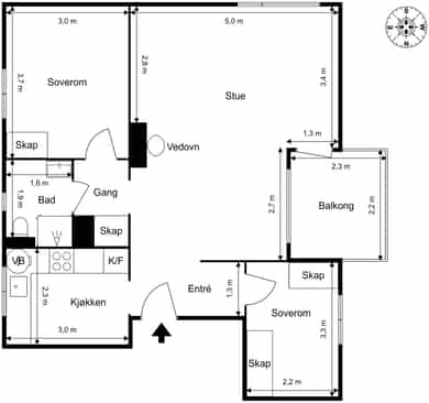 Tre roms - HTH kjøkken fra ´22 - gulv, vegger og himling fra´22 - bad/WC fra ´16 - garasje - balkong - ingen TG3 m.m.