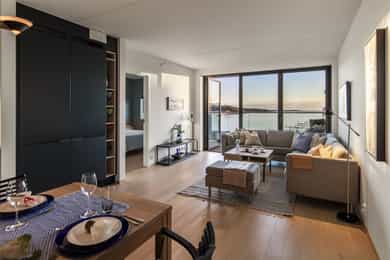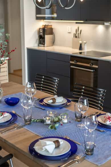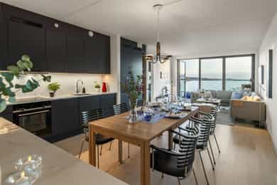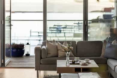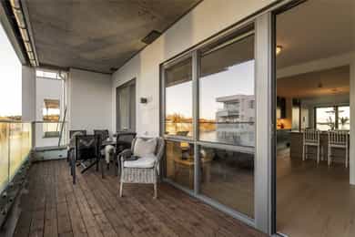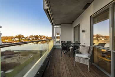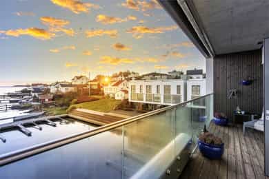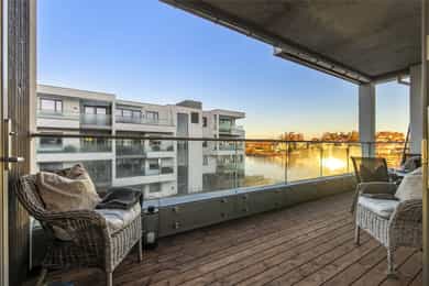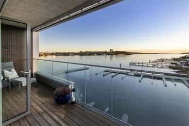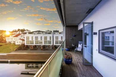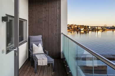 Med to balkonger kan du nyte morgenkaffen i solen på den østvendte balkongen ved stuen, mens den store vestvendte balkongen byr på herlig ettermiddags- og kveldssol. Sistnevnte har god plass til både spisegruppe og grill, perfekt for lune sommerkvelder med utsikt over sundet.