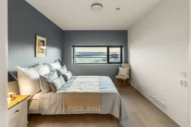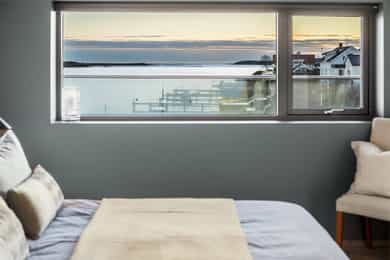 Eksklusiv 4-roms v/vannkanten på Husøy! 2 stuer, 2 bad og 2 balkonger | Sjøutsikt | Heis og garasje | Båtplass*!