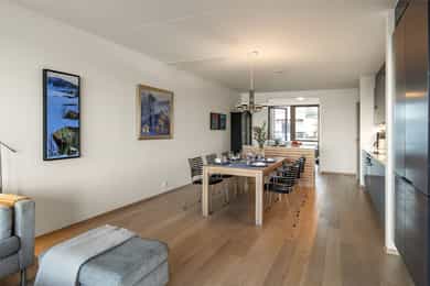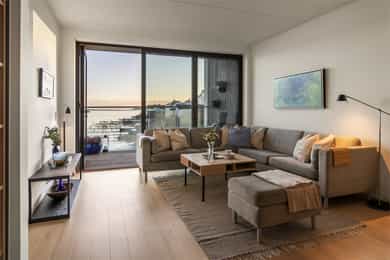 Moderne og svært tiltalende 4-roms selveierleilighet fra 2020 med en unik beliggenhet helt i vannkanten på Husøy Havn. Leiligheten holder en gjennomgående høy standard og har en meget smart planløsning. Her får du to stuer, to delikate bad, samt to balkonger som sikrer sol til ulike tider av døgnet. Hovedsoverommet er en privat suite med eget bad og walk-in-garderobe. Med vannbåren varme, balansert ventilasjon og heisadkomst rett fra garasjeanlegget, er dette en bolig med fokus på komfort. Utenfor døren venter en maritim livsstil med sandstrand, brygge og kajakkutlån. En sjelden mulighet for deg som drømmer om å bo der sjøluften er en del av hverdagen. Mulighet for båtplass. Velkommen!