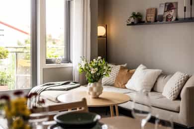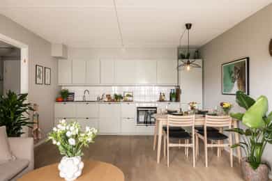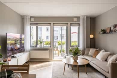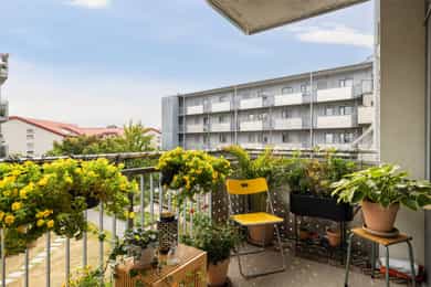 Moderne og flott 3-roms vendt mot bakgård. Balkong. Oppgradert bad i 2021. Garasjeplass m/el-lader. VV og fyring inkl.