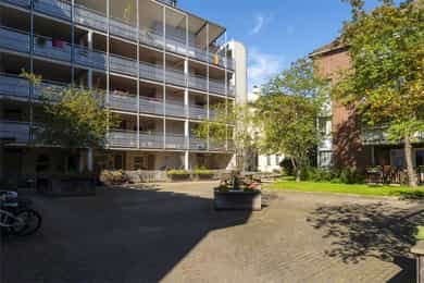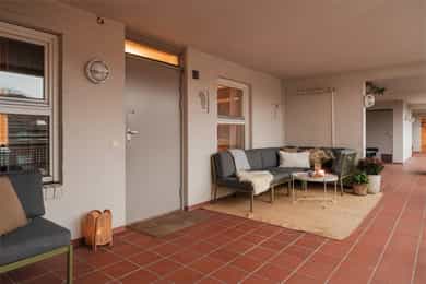 Adkomst til leiligheten fra indre gårdsrom. Det vil bli skiltet med Nordvik visningsskilt ved offentlige visninger.