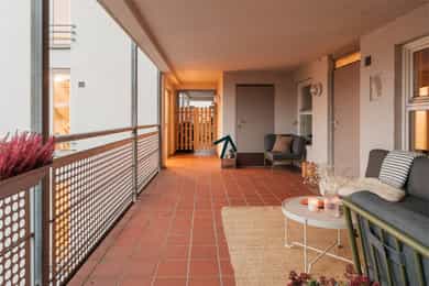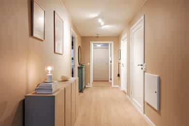 KORT SAGT - Praktisk og moderne 4-roms andelsleilighet - Alle flater malt/oppusset i 2020 - Varmtvann inkludert - Sentral og attraktiv beliggenhet på Bjølsen - I fjerde etasje med heisadkomst - Garasjeplass med lader til EL-bil - Romslig uteplass i svalgang - Åpen garderobeløsning i entré - Stue og kjøkken i åpen løsning - Kjøkkeninnredning er fra 2020 - Integrerte hvitevarer i kjøkken - Delikat bad oppusset 2020 - Dusjkabinett med regnfallsdusj - Opplegg for vaskemaskin og plass til tørketrommel - Tre pene soverom med god plass til oppbevaring - Hovedsoverom har eget walk-in closet - Lagring i bod på 4 kvm ved inngangsparti. GANG Praktisk inngangsparti med god plass til oppheng av jakker og sko. Enkel adkomst til leiligheten via svalgang, heis opp til etasjeplan og ned til garasjeanlegg. Sikringsskap med automatsikringer. Sikringsskapet er plassert i yttergang. Meget praktisk med utebod på 4 kvm rett på utsiden av inngangsparti. STUE Leiligheten har en svært lys og fin stue med god plass til både sofagruppe og spisebord. Naturlig plass til TVen ved sofagruppen. Vegger er malt i moderne, tidløse farger og det er pen enstavslaminat på gulv. Utrolig lys og trivelig spisestue med utsikt utover nabolaget og godt med lysinnslipp. Selgers ord: " Mange vinduer, med høy og fri beliggenhet, som gir nydelig lys inn i spisestue og stue. Opprinnelig var "spisestuen" en vinterhage som noen tidligere eiere åpnet opp slik at stuen ble større. Mange har gjort akkurat dette i borettslaget. Det ble i 2023 installert spesialtilpassede, diskrete plisségardiner i vinduene. Delvis åpen løsning mellom stue og kjøkken, noe som både er praktisk og sosialt. KJØKKEN Utrolig fint og gjennomført kjøkken med nyere innredning fra 2020 og integrerte hvitevarer (kombiskap, oppvaskmaskin, stekeovn og platetopp). Kjøkkeninnredning fra AUBO med laminerte benkeplater og slette fronter. Ventilator med kullfilter. Waterguard er montert. HOVEDSOVEROM Stort hovedsoverom som vender mot rolig, indre gårdsrom og svalgang. God plass til dobbeltseng, nattbord og garderobeskap. Praktisk med direkte adkomst til walk-in-closet. Her har man god plass til masse klær og oppbevaringsmøbler. Opprinnelig var dette en innvendig bod som forrige eier omgjorde til en walk-in-closet. Det kan tilbakeføres dersom man ønsker det. SOVEROM II Soverom II vender også mot indre gårdsrom og har romslig oppbevaringsplass i hvite garderobeskap langs den ene veggen. Malte overflater og teppeflis på gulv, noe som er meget behagelig på kalde dager. SOVEROM III Dette rommet er i dag innredet som barnerom, men passer også godt som for eksempel kontor eller gjesterom. BAD Badet er stort og delikat med romslig dusjkabinett, veggmontert toalett, samt god plass til vaskemaskin og tørketrommel under spesialtilpasset benkeplate. Innredningen er hvit med glatte skuffefronter, heldekkende servant og speil med integrert belysning. I tillegg er det montert et høyskap med trefargede fronter. Det er montert gulvvarme, downlights i tak og mekanisk avtrekk. Badet ble oppgradert i 2020. Se tilstandsrapporten for mer informasjon. UTEOMRÅDE Leiligheten har adkomst via svalgang og ved inngangspartiet er det en halvvegg som gir en egen sone for utemøbler. Her er det god plass for hjørnesofa og bord. Svalgangen har flislagt gulv og metallrekkverk ut mot trivelig, velstelt felles gårdsplass. Selgers ord: "Veldig fint å sitte ute og spise middagen på vår/sommer/høst - lite sjenanse av naboer, og overbygg kombinert med varmelampen gjør det lunt og godt store deler av året.» Gårdsplassen er steinlagt og har en flott, plassbygget sittegruppe. Fellesarealene har også pene grøntområder og det er godt tilrettelagt for familiens minste med lekeapparater og sandkasse.