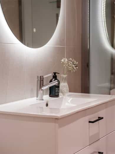 - Badet ble oppgradert med avrettet gulv og smøremembran lokalt i dusjen.