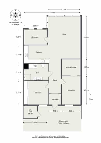 Utvendig bod: 3,6 kvm.