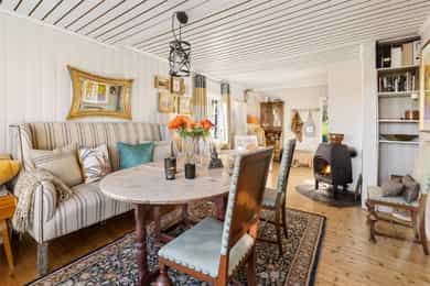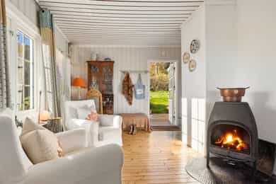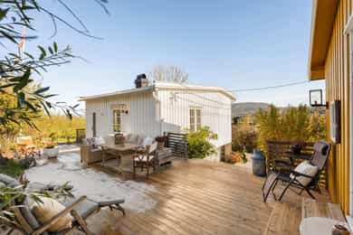 Sjarmerende hytte med frodig hage, idyllisk beliggende med fjordutsikt - Nyere kjøkken - Utleiemuligheter - Anneks