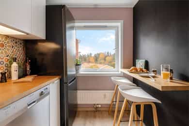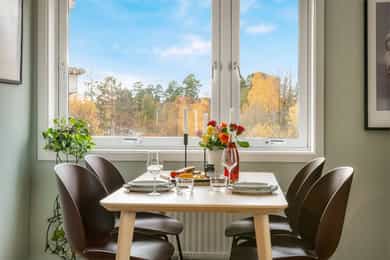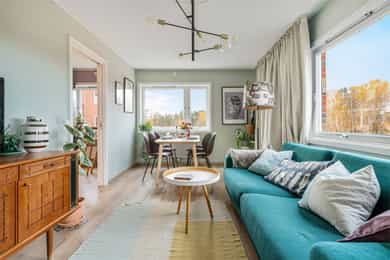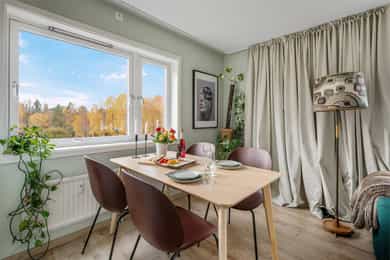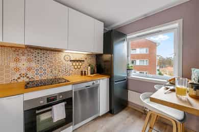 Nordåsveien 23 A er en romslig, lys og velholdt 2-roms hjørneleilighet i tredje etasje. Boligen ligger rolig til nær både marka og fjorden, og det er kort gangavstand til busstopp i Nordåsveien, matbutikk v/ Bunnpris, togstasjon og Holmlia Senter. - Det følger med garasjeplass - Stor balkong med meget gode solforhold og flott utsyn. - Hjørne/endeleilighet med mye lysinnslipp - Praktisk og god planløsning - Godt og åpent utsyn - Nyere laminatgulv i oppholdsrom - Entre med skyvedørsgarderobe og speil - Delvis adskilt kjøkken - Lekre fliser over benkeplate på kjøkken og på gulv i entre - Bad/wc/vaskerom, moderniseringsbehov, opplegg for vaskemaskin - Stort soverom med hyggelig utsyn - Fyring og varmtvann er inkludert i felleskostnad - Lave strømkostnader
