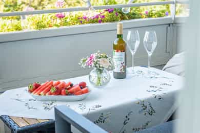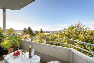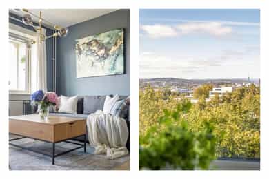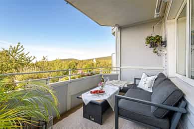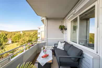 Solrik og høytliggende med fantastisk utsikt - Stor sydvendt balkong - Fyring/internett m.m. inkl. - Stille og idyllisk