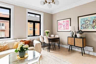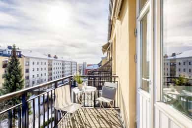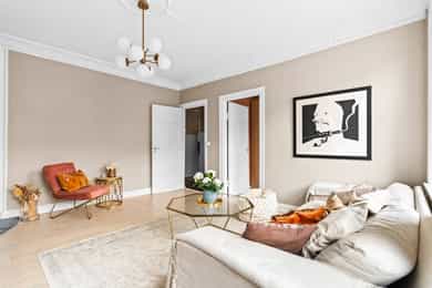 Lys og innbydende 2-roms leilighet med attraktiv beliggenhet og god planløsning. Boligen byr på en romslig stue med store vindusflater, god takhøyde og peisovn som skaper en lun atmosfære. Det klassiske kjøkkenet har rikelig med skapplass, integrerte hvitevarer og utgang til en sydøstvendt balkong - perfekt for morgenkaffen. Soverommet vender mot rolig gate og gir gode rammer for en god natts søvn. Flislagt bad med varmekabler og opplegg for vaskemaskin. En praktisk entré med skyvedørsgarderobe gir gode oppbevaringsmuligheter. Her bor du i en sjarmerende bygård med kort vei til alt du trenger i hverdagen. Høydepunkter: - Sørøstvendt balkong på 5 kvm - Mulighet for å gjøre om til en 3-roms leilighet - Klassisk leilighet med stukkatur og rosett - God oppbevaringsplass i boder - Fin bakgård