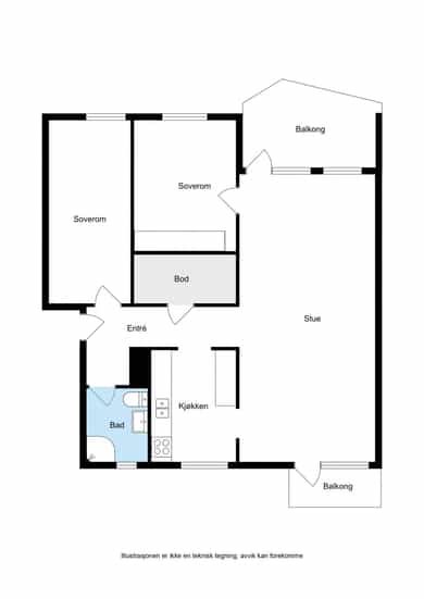 BRA-i: 75 kvm. Entré, stue, kjøkken, 2 soverom, bad, bod