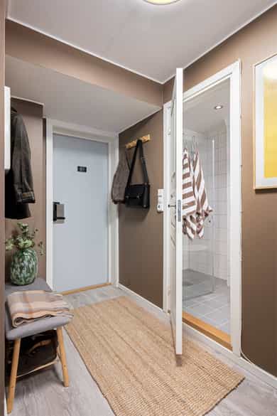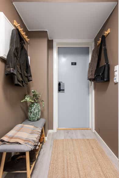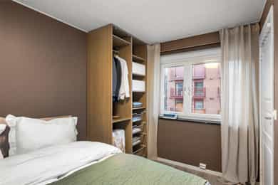 ENTRÉ Leiligheten har en innbydende entré med god plass til både jakkeoppheng og skohyller. Skyvedørsgarderobe gir ytterligere oppbevaringsmuligheter for yttertøy og klær. Det ble montert elektrisk kodelås på ytterdør i 2025, som gir en moderne og praktisk adkomstløsning. KJØKKEN Delikat og funksjonelt kjøkken med innredning med hvite, slette fronter og benkeplate med nedfelt oppvaskkum. Det er fliser mellom benkeplate og overskap. Kjøkkenet er utformet med en praktisk kjøkkenøy som gir ekstra arbeidsflate, oppbevaring og sitteplasser. Kjøleskap er integrert i innredningen. Ventilasjonsanlegget tilknyttet andelen ble oppgradert i 2025 med ny motor og ventilasjonshette i regi av borettslaget. Følgende integrerte hvitevarer på kjøkkenet medfølger handelen: Platetopp, oppvaskmaskin, stekeovn, kjøleskap. STUE Stuen har en funksjonell utforming med plass til sofagruppe og TV-løsning. Rommet er malt i en moderne farge som bidrar til en behagelig og lun atmosfære. Store vindusflater gir godt med naturlig lys og skaper en trivelig romfølelse. Følgende inventar i stuen medfølger handelen: TV – Samsung The Frame (2024), TV-benk (ny 2024), Sofa (ny 2024), Sofabord (ny 2024). SOVEROM Soverom med plass til seng og garderobeløsning. Garderobeskap og seng medfølger handelen. Rommet fremstår som praktisk og lett å møblere. BADEROM Badet er flislagt på vegger og gulv, og har gulvvarme. Rommet er innredet med servant med innredning, veggmontert toalett, dusjvegger/hjørneløsning samt opplegg for vaskemaskin. Vaskemaskin (ny 2024) medfølger handelen. Boligen har naturlig ventilasjon med mekanisk punktavsug fra kjøkken og baderom. Leiligheten fremstår som et fantastisk alternativ for førstegangskjøper eller student, med praktiske løsninger, oppgraderinger og betydelig inventar inkludert i kjøpet.