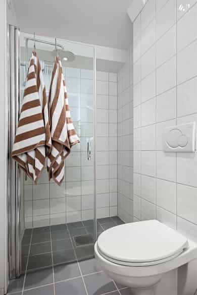 BOLIGBYGG MED FLERE BOENHETER Utvendig: Vinduer: Type: Vinduer med isolerglass. Alder: Fra ombygging (2006). Vinduer er undersøkt ved stikkprøver. Det er sett etter punkterte glass, men merk at dette kan være vanskelig, eller i noen tilfeller umulig, å oppdage ved visuell inspeksjon. Jevnlig justering av vinduer må påregnes grunnet klimavariasjoner, slitasje og naturlige bevegelser i bygget. Dører: Type: Brann- og lydklassifisert entrédør. Alder: Entrédøren er uten datomerking. Det er sett etter punkterte glass, men merk at dette kan være vanskelig, eller i noen tilfeller umulig, å oppdage ved visuell inspeksjon. Jevnlig justering av dører må påregnes grunnet klimavariasjoner, slitasje og naturlige bevegelser i bygget. TG2 3. Etasje - Bad - Overflater vegger og himling - Riss er observert i flisefuger. Dette kan skyldes flere årsaker, for eksempel bevegelser i underlaget, normal slitasje, temperaturendringer eller fuktrelaterte skader. - Det er registrert sprekk i flis. Sprekker er normalt kosmetiske, men kan indikere bevegelser i underlaget. Om årsaken skyldes fukt eller bygningsbevegelser, er usikker. Overvåk overflaten for nye sprekker eller endringer. - Det er registrert bom i fliser (hulrom mellom flis og fliselim). Dette kan skyldes flere årsaker, for eksempel manglende vedheft til underlaget, bevegelser i underlaget, temperaturendringer eller fuktbelastninger. Hulrom bak flisene gir økt mulighet for sprekker og løse fliser. - Det er en dør innenfor en våt sone i rommet. Dette betyr at døren er mer utsatt for vannsøl som kan føre til skade. - Det er registrert svertesopp på fuger. Soppen bør fjernes ved grundig vask eller utskifting av fugemasse avhengig av hvor dypt den sitter. - Konstruksjonen har passert halvparten av forventet levetid og har bruksslitasje. Alder og bruksslitasje kan øke behov for vedlikehold og tiltak. 3. Etasje - Bad - Overflater Gulv - Riss er observert i flisefuger. Dette kan skyldes flere årsaker, for eksempel bevegelser i underlaget, dårlig håndverk, normal slitasje, temperaturendringer eller fuktskader. Årsaken er ikke fastslått, og regelmessig oppfølging anbefales for å overvåke utviklingen. - Det er registrert sprekk i flis. Sprekker er primært kosmetiske, men kan indikere bevegelser i underlaget. Om årsaken skyldes fukt eller bygningsbevegelser, er usikker. Overvåk overflaten for nye sprekker eller endringer. - Høydeforskjell mellom topp slukrist og overkant gulv ved døren er lavere enn 25 mm. Dette gjør at nærliggende konstruksjoner er mer utsatt for vannskade, hvis en lekkasje skulle oppstått. - Konstruksjonen har passert halvparten av forventet levetid og har bruksslitasje. Alder og bruksslitasje kan øke behov for vedlikehold og tiltak. 3. Etasje - Bad - Sluk, membran og tettesjikt - Membranen har passert halvparten av forventet levetid. Når membranen eldes, svekkes den gradvis og kan utvikle mindre utettheter som slipper fukt ned i konstruksjonen. Hvor raskt dette skjer avhenger av kvalitet, utførelse og bruk, og regelmessig tilsyn er viktig. En full oppgradering med nytt tettesjikt må påregnes på sikt, selv om det er vanskelig å si nøyaktig når. 3. Etasje - Bad - Sanitærutstyr og innredning - 2 - Det er ingen drensspalte under klosettet. Rommet er bygget før krav om drensspalte ved innebygde sisterner. Uten visuell lekkasjesikring blir eventuelle vannlekkasjer i veggen ikke umiddelbart synlige. TGIU Overflater Gulv: Laminat. Vegger: Sparklet/pussede og malte overflater. Himling: Sparklet/pussede og malte overflater. Himlingshøyde: Ca. 2,38 meter, målt i stue. Innvendige overflater, utover det som er beskrevet og vurdert i øvrige deler av rapporten, er ikke tilstandsvurdert. Vurdering av slike overflater, samt horisontalmåling av gulv, inngår ikke i dette oppdraget. Tilstand, slitasje og utseende er i stor grad subjektivt, og interessenter oppfordres til å gjøre egne vurderinger ved visning. Horisontalmålinger av gulv og oppføring av konkrete høydeforskjeller inngår ikke i dette oppdraget.