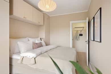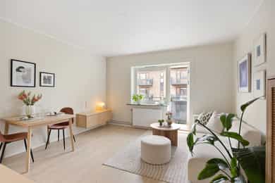 Leilighet beliggende i byggets 4-etasje, sentralt på Sagene/Bjølsen. Det er adkomst fra fellestappeoppgang. Oppgangen har porttelefon. Leiligheten inneholder: Entré, baderom, soverom og stue/kjøkken med utgang til balkong. ENTRÉ: Velkommen inn! Leiligheten har en innbydende entré som skaper et umiddelbart godt førsteinntrykk. Her kan du enkelt henge i fra deg yttertøy. Interiøret i hele leiligheten preges av lyse, moderne flater. Et perfekt utgangspunkt til å innrede med egne møbler og gjenstander for å skape sitt eget personlig preg. LYS OG LUFTIG STUE M/UTGANG TIL BALKONG: Stuen er lys og luftig med store vindusflater som sørger for rikelig med innslipp av naturlig lys. Planløsningen åpner opp for flere møbleringsmuligheter med god plass til sofagruppe, TV-møbler og spisebord med tilhørende stoler. Overflatene er malt i delikate og moderne fargetoner og gulvet er nytt i 2025. Fra stuen er det utgang til en flott vestvendt balkong på ca. 3 kvm. I vår- og sommerhalvåret blir balkongen en naturlig forlengelse av stuen, perfekt for hyggelige stunder med familie og venner. Her kan du enkelt skape en koselig uteoase med utemøbler, beplantning og gass-/elektrisk grill. KJØKKEN: Kjøkkeninnredning er fra IKEA(2024) og har glatte fronter med skap og benkeplass. Laminat benkeplate med en nedfelt vaskekum i rustfritt stål og belysning over benkeplaten. Videre er det hvitevarer med platetopp, stekeovn, oppvaskmaskin og kjøle/-fryseskap. SOVEROM: Soverommet er av god størrelse med plass til dobbeltseng, nattbord og tilhørende møbler. Blandingen av moderne fargevalg på veggene og store vindusflater gir rommet en behagelig følelse. Det er gode oppbevaringsmuligheter i romslig plassbebygd garderobeskap. BADEROM: Flislagt baderom med fliser på gulv og vegger. Baderommet er innredet med klosett, servant skap med glatte, folierte fronter, speil og dusjhjørne. Det er naturlig avtrekksventilasjon og opplegg for vaskemaskin. OPPBEVARING: Leiligheten disponerer en kjellerbod på ca. 3,2 kvm, i tillegg er det en loftsbod på ca. 2 kvm med gulvareal på ca. 5kvm. Det gjøres særskilt oppmerksom på at bod som er medtatt som BRA-e og i totalt BRA ligger på fellesareal, men disponeres av denne leiligheten. TEKNISKE INSTALLASJONER - Radiator og varmt forbruksvann fra sentralvarmeanlegg - Sikringsskap lokalisert i felles trappegang. Automatsikringer med jordfeilbryter. Hovedsikring på 40 A og 7 fordelingskurser. - Vinduer med trerammer og isolerglass, merket med produksjonsår 2013 og 1997 - Brann- og lydklassifisert entrédør (B30/Db35) - Takhøyden ble i stue målt til ca. 2,59m