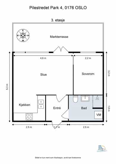 Stue: Boligen har en lys og romslig stue med store vindusflater som gir gode lysforhold. Fra stuen er det utgang til terrasse, som gir en fin forlengelse av oppholdsrommet i sommerhalvåret. Stuen har naturlige soner for både sofagruppe og spiseplass, og egner seg godt for både hverdagsbruk og sosiale sammenkomster. Terrasse: Direkte utgang fra stuen til en østvendt markterrasse på 16 kvm.. Terrassen er romslig og gir et trivelig uteareal med plass til utemøbler i form av sittegruppe, grill og beplantning. Terrassen er oppført i trekonstruksjon med terrassebord lagt på tilfare av tre. Stor hekk som er grønn hele året og skjermer godt for innsyn. Gode solforhold fra ca. kl. 07.45 til 13:00 på sommerstid Kjøkken: Kjøkkenet er plassert i åpen løsning mot stuen, noe som gir en luftig og sosial planløsning. Innredning med glatte fronter og laminat benkeplate med nedfelt vask- og skyllekum. Det er montert belysning og plate over benkeplaten. Kjøkkenet er utstyrt med integrert platetopp, stekeovn og oppvaskmaskin, samt avtrekk over kokeplass. Bad: Flislagt og tidsriktig baderom fra byggeår 2006. Badet er innredet med vegghengt toalett, servant og dusjhjørne med skyvbare glassdører. Opplegg for vaskemaskin. Rommet har balansert ventilasjon, himling med lakkerte stålplater og innfelte downlights. Flislagte vegger og gulv med elektrisk gulvvarme. Soverom: Romslig og innbydende soverom med god plass til dobbeltseng, nattbord og kommode. Det er også rom for garderobeløsning. Entré: Lys og innbydende entré med god plass til oppheng av yttertøy og oppbevaring av sko. Det er også rom for etablering av garderobeløsning, noe som gir praktiske oppbevaringsmuligheter. Tilstandsrapport for boligen er vedlagt salgsoppgaven. Se denne for nærmere informasjon om tilstandsgrad.