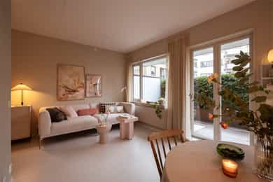 Velkommen til en flott 2-roms beliggende i byggets 3. etasje fra inngangsplanet, med enkel adkomst via heis. Leiligheten vender inn mot en skjermet, indre gårdsplass som ligger i plan med boligen, og gir rolige og private omgivelser. Boligen har en romslig og sosial planløsning med gode møbleringsmuligheter, og fremstår som både funksjonell og innbydende. Her bor du tilbaketrukket i et stille og attraktivt bomiljø, samtidig som du har kort vei til sentrum med et bredt tilbud av butikker, restauranter, kaféer og gode rekreasjonsmuligheter i nærliggende parker. Fremtredende kvaliteter: