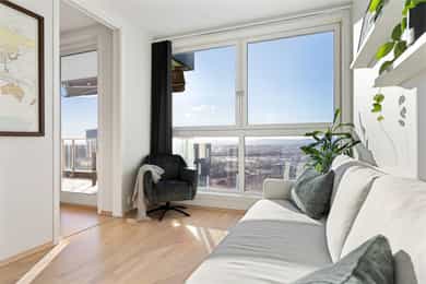 Fantastisk beliggenhet på toppen av Torshovdalen i moderne bygg fra 2013. Her bor du svært sentralt med t-banestasjon (Sinsen) rett ved leiligheten. I samme bygg finner du matbutikk, legekontor og apotek – svært praktisk for hverdagen. Torshovdalen grenser til sameiet, og med heis, dagligvarebutikk, apotek samt flotte tur- og rekreasjonsområder i umiddelbar nærhet, passer denne boligen like godt for eldre som for barnefamilier. Det ligger et treningssenter, Momentum Trening, i Hans Nielsen Hauges gate 29C, kun ca. to minutters gange fra boligen. Her har beboere i sameiet mulighet til å benytte treningsfasilitetene. Torshovdalen vant Statens byggeskikkpris i 2015, og juryen fremhever prosjektets boligkvaliteter som utsikt, gode solforhold, nærhet til park, gjennomtenkt byplan, arkitektur av høy klasse og et variert boligtilbud. Arkitekt og byggherre har sammen satset på kvalitet og skapt et forbilde for god byggeskikk. Sameiet ligger inntil Torshovdalen, som om sommeren inviterer til grilling og hyggelige stunder i grønne, barnevennlige omgivelser. I sameiet finnes også flere butikker som Rema 1000, apotek, hudpleieklinikk og legekontor. Nærområdet byr videre på butikker som Kiwi, Joker og søndagsåpen Bunnpris, samt populære kafeer som Åpent Bakeri og Kaffebrenneriet, restauranter, kino og teater. Det finnes også mange takeaway-muligheter. Du har gangavstand til Grünerløkka med sitt pulserende uteliv, Nydalen og Storo med flere treningssentre, Torshovparken og Akerselva med flotte tur- og rekreasjonsmuligheter. Videre er det kort vei til Maridalen og Lillomarka med skiløyper og turstier, samt Grefsenkleiva skisenter. Torshovdalen Sameie I ligger nær kollektivknutepunkt med buss (inkludert nattlinjer), flybuss til Gardermoen, tog fra Grefsen stasjon, trikk og T-bane. T-banen tar deg på 2 minutter til Storo med Oslos største kjøpesenter, 3 minutter til Nydalen med Handelshøyskolen BI, 9 minutter til Blindern og 8 minutter til Jernbanetorget.
