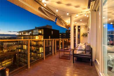 Velkommen til Hans Nielsen Hauges gate 37F! Dette er en attraktiv og stilren 3-roms leilighet fra 2013, beliggende i et prisvinnende sameie øverst i Torshovdalen. Leiligheten har flott utsikt mot Torshovdalen, og fra inngangsdøren har du kort vei til barnehage med prioritet, dagligvarebutikk og et svært godt kollektivtilbud. Kvaliteter: - 3-roms med god planløsning - Syd-vestvendt balkong på ca. 20 m² - Storslått utsikt mot Torshovdalen, sentrum og fjorden - Store vindusflater - Gulvvarme i alle oppholdsrom og balansert ventilasjon - Fjernvarme/varmtvann á konto, bredbånd og kabel-tv inkludert i felleskostnadene - TG1 på alle punkter - Tilhørende kjellerbod - Garasjeplass m/elbillader - Heis - Praktisk med matbutikk, legekontor og apotek i samme bygg - Idylliske grøntarealer