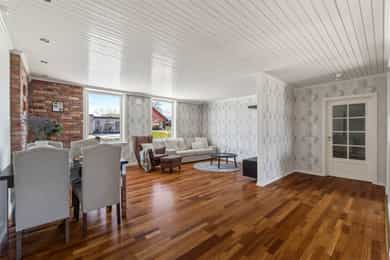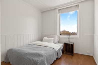 Velkommen til Aasgaarden 5! En lys og innholdsrik selveierleilighet beliggende flott til i 1. etasje i et sjarmerende og ærverdig bygg oppført på 1920-tallet. Her har man skog og nydelige turmuligheter sommer som vinter rett utenfor døren! I tillegg er det kort gåavstand til Bakkenteigen, butikker, sjø og strand! Leiligheten inneholder: entre, stue/kjøkken i delvis åpen løsning, bad og 2 fine soverom. Fra kjøkkenet er det utgang til en stor og skjermet markterrasse! Her kan det dekkes langbord til hyggelige lag med familie og venner, og det er nydelig utsikt over omkringliggende natur og sjøgløtt! Man disponerer en bod på loft, en matbod i kjeller, samt felles vaskerom og fellesboder i kjeller. Egen parkeringsplass. Velkommen!