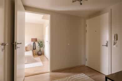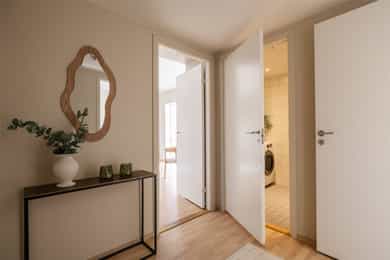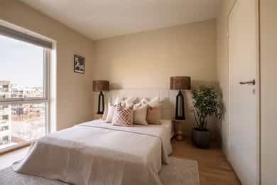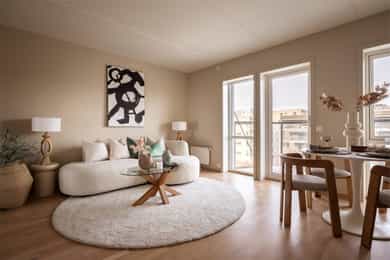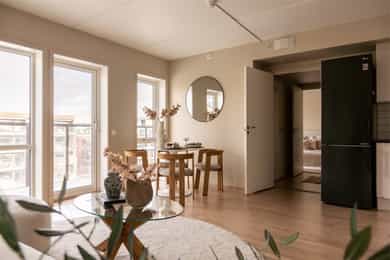 Lys og herlig 2-roms i bygg fra 2019, med moderne standard og fasiliteter. Balkong på 7 kvm. Heis. Garasjeplass