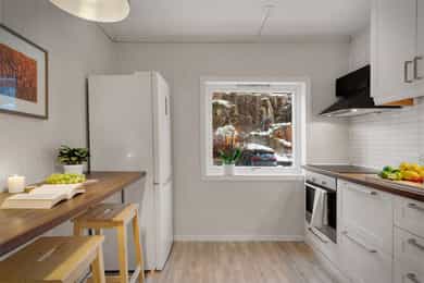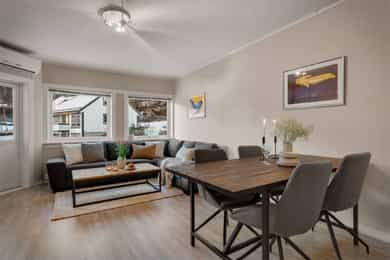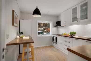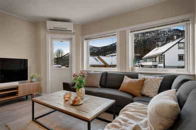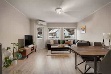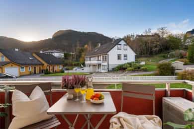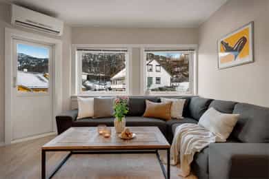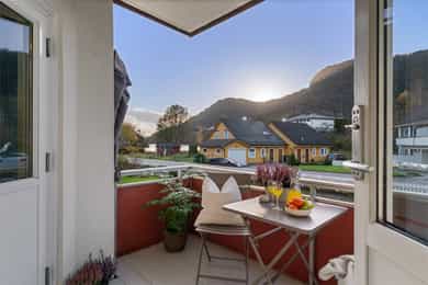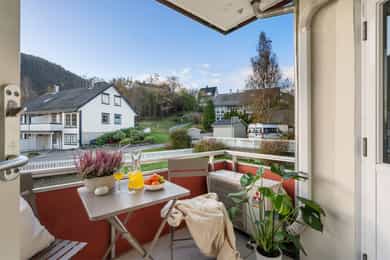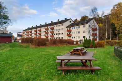 Velkommen til Skjeneviksveien 15 - En pen 3-roms i rolige og naturskjønne omgivelser. Bo skjermet med skog og fjell som nærmeste nabo, men samtidig svært sentralt med alt av service- og fasilitetstilbud innenfor kort avstand. Innenfor gangavstand finner du blant annet buss, butikker og øvrige servicetilbud. Det er kun 5 minutters gange til Rema 1000 Nygård, og 20 minutters gange til Kiwi på Laksevåg senter. Det er også kort vei til Sjøkrigsskolen og idrettsanlegg. Boligen ligger nærme sjøen og stor båtmarina like ved. Nærmeste busstopp ligger bare 2 minutters gange unna, hvor rute 44 går. Skoler og barnehager 5 min gange til Valheim barnehage (0-5 år) 9 min gange til Sjøsprøyten barnehage (0-5 år) 11 min gange til Nygårdslien skole (1-7 kl.) 19 min gange til Holen skole (1-10 kl.) 5 min gange til Laksevåg videregående skole Med bil bruker man ca. 10 min. til Bergen sentrum og 17 minutter til Flesland. Eiendommen ligger også svært sentralt med kort vei til både Vestkanten storsenter og Laksevåg senter. Her bor du i et flott område med gangavstand til flere flotte turmuligheter som for eksempel nydelig turterreng rundt Gravdalsvannet, Lyderhorn, Damsgårdsfjellet, Ørnefjellet og Kanadaskogen. En kort prat med selger: Hva kommer dere til å savne med boligen? - Kjem til å savne uteområdet til borettslaget. Om sommeren er det fine områder for grilling og badning, samt det blir satt opp telt som ein kan bruke til selskap o.l. Det er også fine leike muligheter for barn med ulike leiker, husker, trampoline og sandkaser m.m. Kjem også til å savne terrassen, stuen og utsikten på fine sommerkvelden enten på terrassen eller med dør stående åpen inn til stuen. Boligen har også svært gode lagringsmuligheter med 3 boder slik, så kjem også til å savne det å ha god plass og bare kunne rydde unna årstidene og få rot og ting bort ifrå leiligheten. Hvilke er dine favoritturer i nabolaget? - Det er mange fine og gode turmuligheter i nærområdet. Liker spesielt godt Lyderhorn dersom eg ønsker fjelltur med fin utsikt eller litt roligere og kosligare turer i Kanadaskogen. Turen opp til Viggohytten er spesielt fin for å nevne noen. Hvordan er nabolaget? - Naboene i borettslaget er godt blandet i alder og etnisiteter. Det er alt fra unge voksene, til barnefamilier til pensjonister. Litt om nærmiljøet og området generelt: - Det er kort vei til det meste, selv om ein bor nokså skjermet. Det er ca 5 minutter å gå til rema 1000 på nygård med frisør og blomsterbutikk. Det tar ca 5 minutter å gå til nærmeste bhg og laksevågvideregående skole. Det tar ca 10-15 minutter å gå til nærmeste barneskole. Mova treningssenter ligger også ca 5 minutter gange fra leiligheten. Nærmeste busstopp tar ca 1-2 min gange, mens ein kan gå til hovedveien ved Lyderhorntunellen på ca 10 minutter. Samt til Nygård på 5 minutter med linjer til Haukeland og sentrum. Laksevåg senter ligger ca 3-5 minutter unna med bil med flere butikker, helsestasjon og tannlege. Det tar ca 10 minutter å kjøre til vestkanten storsenter. Sjøkrigsskolen ligger ca 10 minutter gange fra leiligheten. Laksevåg idrettshall ligger også ca 10 minutter gange fra leiligheten. Lyngbø fotballbane ligger ca. 5 minutter gange fra leiligheten. Det ligger også ein idrettsbane ca 10-15 minutter gange fra leiligheten.