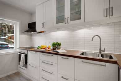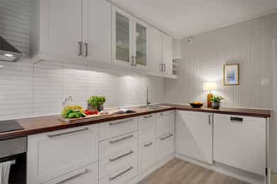 Følgende hvitevarer medfølger: platetopp, komfyr og oppvaskmaskin.