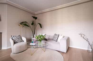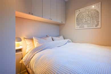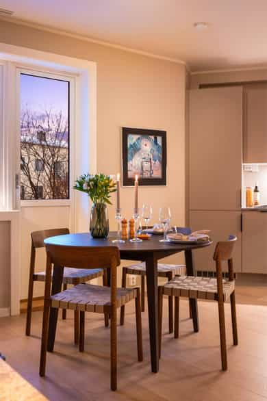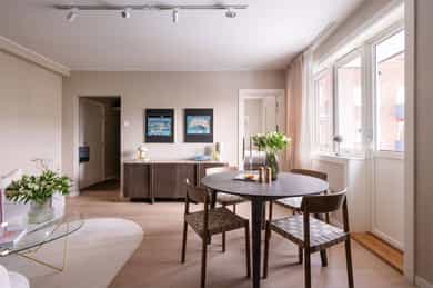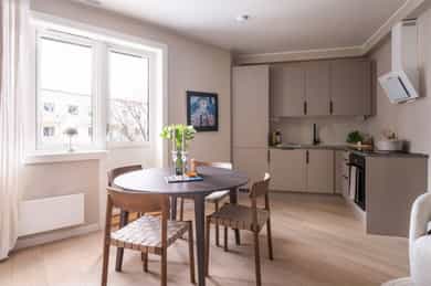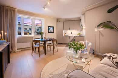 Gjennomført og stilren 2-roms beliggende flott til på Bislett. Leiligheten ble betydelig oppgradert i 2024 og holder en gjennomgående høy standard med elegante materialvalg og delikate farger. Her får du en lys og luftig planløsning med ekstra takhøyde (ca. 2,6 m), god plass til sosiale soner som sofa- og spisegruppe, romslige og praktiske garderobeløsninger med plassbygde garderobedører på soverom, samt direkte utgang til balkong som vender ut mot et stort, åpent og rolig, indre gårdsrom