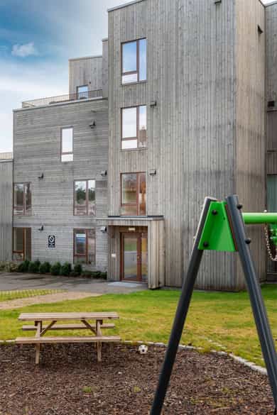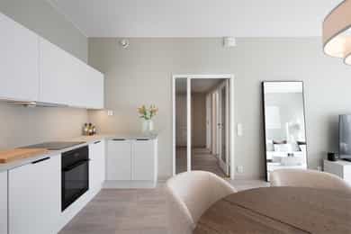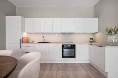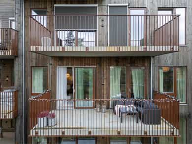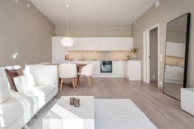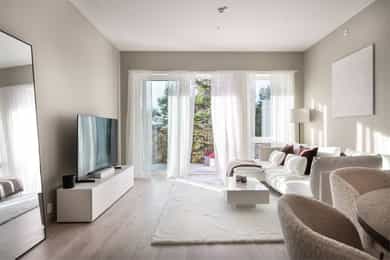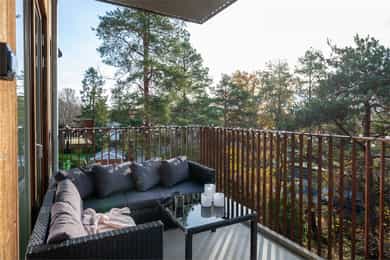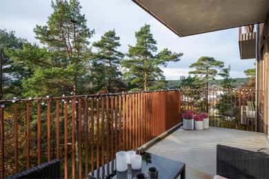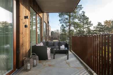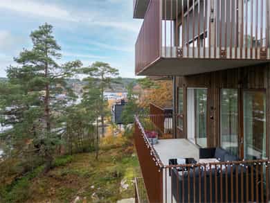 Smakfull 3-roms leilighet på Pettersand, i moderne trehusblokk. Balkong på 13 kvm med sol og utsikt. P-plass.