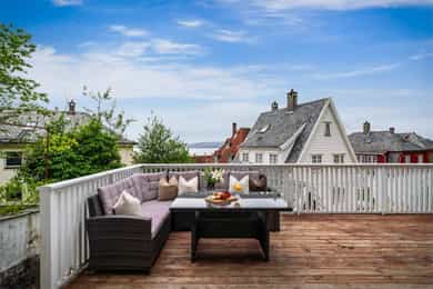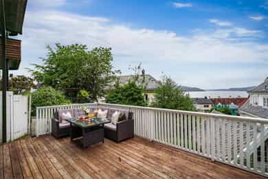 Leiligheten har en flott beliggenhet i idylliske og ettertraktede Sandviken. Bor du i Kirkegaten får du det beste av to verdener - du har gangavstand til sentrumskjernen, samtidig som du har flotte turområder like utenfor gatedøren. Hvis du beveger deg oppover i nabolaget, finner du et eldorado av områder med utallige turmuligheter, hvor idyllene ligger tallrike og venter på deg. Eksempler på dette er nevneverdige Fjellveien, Permisjonsstien, Sandviksbatteriet, Stoltzen og Fløyen. Det er ikke bare i fjellene turmulighetene er gode, det å vandre rundt blant nydelig trehusbebyggelse og mer ærverdige bygårder i Sandviken er en opplevelse i seg selv - og en "tursti" du aldri blir lei av. Brosteinsbelagte gater, små smau og grønne lunger. Det må også nevnes at du har flere flotte parkanlegg i nabolaget, herunder Meyermarken et par minutter unna. Perfekt om du ønsker å sole deg eller nyte en piknik med venner. Det er flere dagligvarebutikker i området, herunder Sandviken dagligvare og Joker Sandvikstorget. Ca. 10 minutters gange fra leiligheten finner du Coop Extra og KIWI, samt Støletorget med Meny og apotek. Sandviken er en egen liten sentrumskjerne i seg selv - med flere restaurant- og cafétilbud i umiddelbar nærhet. Ta spaserturen i nydelige omgivelser omkranset av klassiske bygårder, og nyt en kaffe eller et glass vin på et av serveringsstedene i området. Selger har satt spesielt stor pris på nærheten til Falske Reker, Bod24 og de koselige caféene på Støletorget. Student? Da bor du perfekt til. En kort spasertur fra leiligheten finner du busstopp med hyppige avganger inn mot UIB, BI og HVL og og i andre retningen mot NHH. En kort prat med selger: Hva var det viktigste for dere ved kjøpet av boligen? - Leiligheten ligger i en rolig og pen gate med gangavstand til sentrum. Samtidig har den fantastisk utsikt til både sjø og fjell. Vi falt også for den rene og romslige følelsen inne i leiligheten – den har en behagelig og innbydende atmosfære som gir en følelse av ro. Hva kommer dere til å savne med boligen og området? - Vi kommer til å savne den vakre utsikten mot sjøen, både fra stuen og terrassen. Terrassen har også fantastiske solforhold, som vi har nytt med mange hyggelige lunsjer og middager. I tillegg vil vi savne nærheten til natur og fine turmuligheter, og ikke minst det trygge og hyggelige nabolaget. Hva liker dere best med beliggenheten? - Den rolige beliggenheten kombinert med gangavstand til sentrum er noe vi har satt stor pris på. Det er en sjelden kombinasjon å kunne bo så sentralt, men likevel med så mye ro og nærhet til både fjell og sjø. Hva er deres favoritturer i nabolaget? - Det finnes mange fine turmuligheter i området. Vi har ofte gått turer opp mot nærliggende fjelltopper som Stoltzen, Sandviksfjellet og Fløyen. Disse gir også et fantastisk startpunkt for lengre fjellturer bakover i terrenget (Rundemanen, Vidden etc.). Det er også gode joggeruter og stier i området, både i terreng og langs sjøen, som gir mange muligheter for både korte og lengre turer rett fra døren. Hva er nærmeste kollektivtilbud? - Nærmeste busstopp ligger kun to minutters gange unna. Derfra går det jevnlige avganger til sentrum. Omtrent syv minutters gange unna ligger en annen bussholdeplass med avganger til både sentrum og andre deler av byen, til enhver tid. Hvordan er nabolaget? - Nabolaget er stille og rolig, med hyggelige og hjelpsomme naboer. Det er en god stemning i området, og man føler seg både trygg og velkommen her.