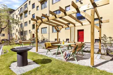 • Flott og skjermet bakgård med plen, planter, grill og stitteplasser