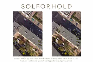 Boligen er gjennomgående hvorav stuen og balkongen vender mot sør/vest og bakgården. Midtsommers så viser solkartet sol fra rundt 11 tiden mot 21 tiden på balkongen. Selger opplyser om følgende: Solforhold er ca. fra 11:00 til 20:30 på balkongen.