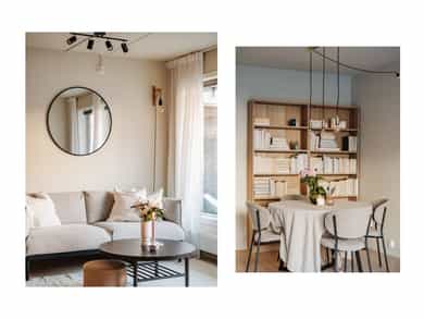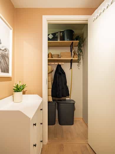 Dette medfølger: - Frittstående kjøkkenøy. - Stekeovn og oppvaskmaskin på kjøkken. - Speil på WC. - Veggmontert hylle på WC. - Garderobeskap på begge soverom. - Vegghengt, hvit hylle i gang og knagger medfølger. - Bambus-gjerde. Dette medfølger ikke: - Kjøleskap og vaskemaskin. - Bokhyller, string-hylle i stue, veggmontert speil i stue og i gang. - Veggmontert lampe ved vindu i stue. Selger har hatt Phillips hue-system for lysstyring. Dokkingen blir værende, men ikke alle lyspærer. Kjøper får kjøpe de hen ønsker selv etter overtakelse. Opplysningene i salgsoppgaven går foran standard-listen. Alle møbler, hvitevarer, lamper etc. er brukt og overtas i den stand det var på besiktelsen.
