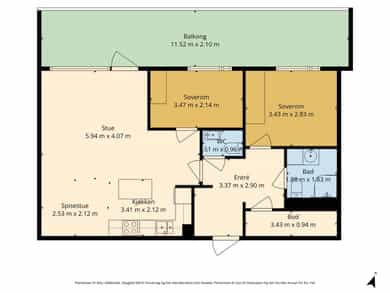 BRA-i: 68 kvm. Gang, bad, stue/kjøkken, toalettrom, bod, soverom I og soverom II.