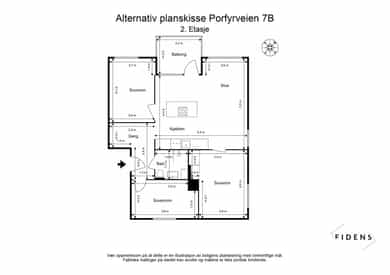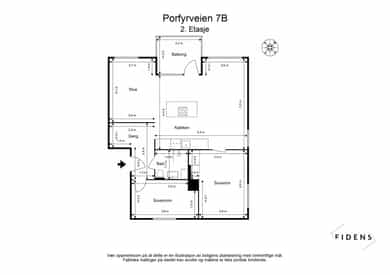 BRA-i: 69 kvm. Entré/gang, to soverom, bad, stue/kjøkken