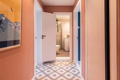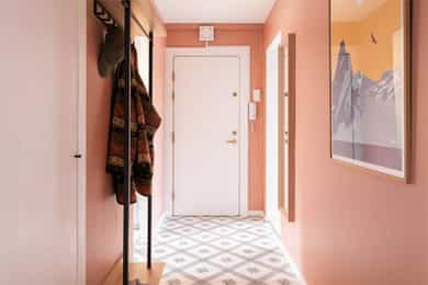 2026: Nye downlights i himling i entré/gang. Himling i gang malt i forbindelse med arbeidet. Vinduskarmer og dørterskler malt.