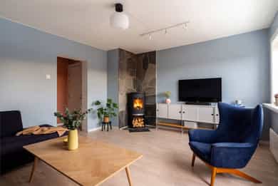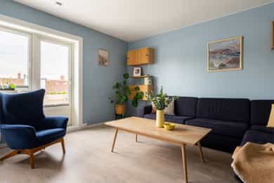 Stilren og gjennomgående 3-roms toppleilighet - Solrik balkong - Peis - Attraktivt og sentralt - Svært populært brl.