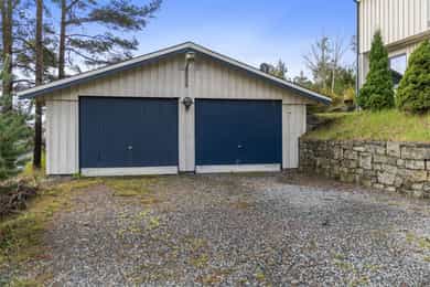 Parkering i garasje eller på gruset gårdsplass foran garasje.
