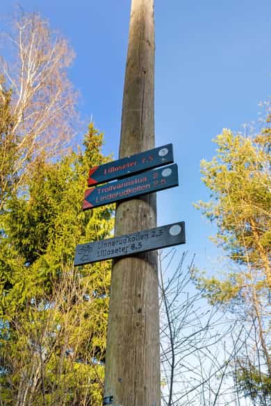 Fra RV4 Trondheimsveien ved Bjerke travbane følges Årvollveien nordover mot Marka.
