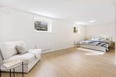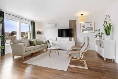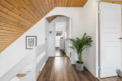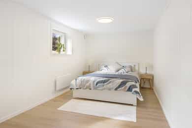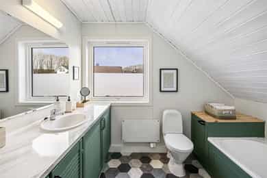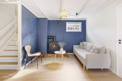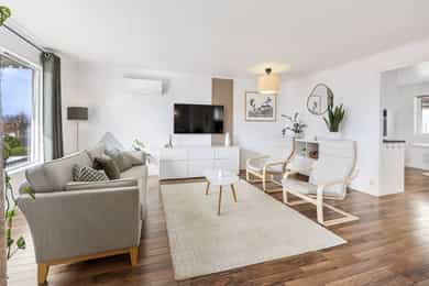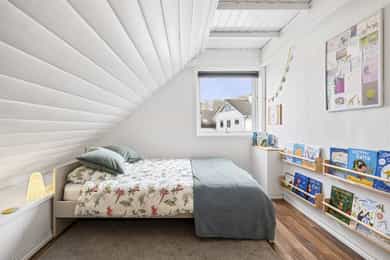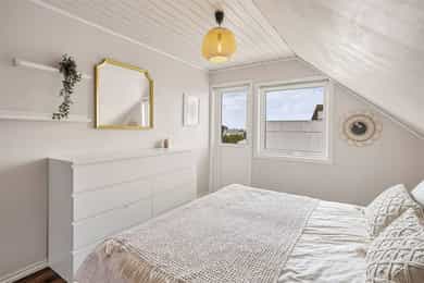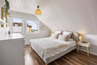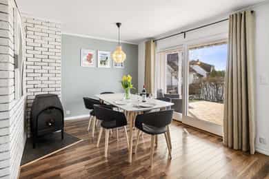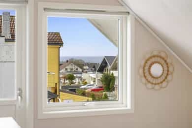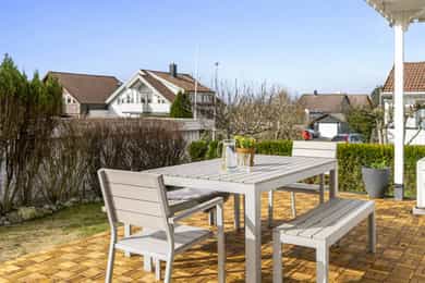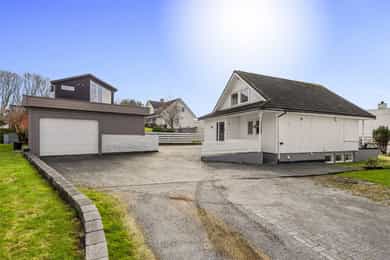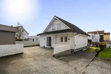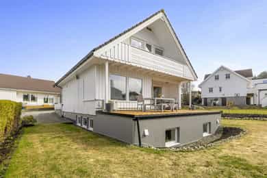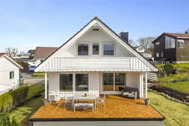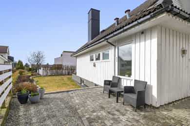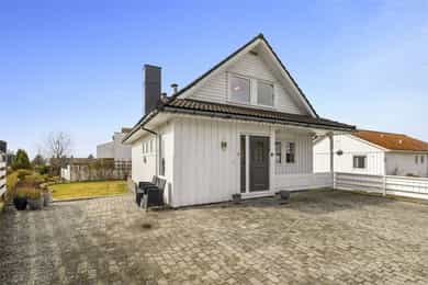 Innbydende og innholdsrik enebolig innerst i blindvei. Det er gjort en rekke oppgraderinger i senere år, hvor underetasje blant annet er innredet med stue, soverom, bad, vaskerom og boder. Kjøkkenet er fra 2017, og ellers er drenering tatt, samt begge bad og vaskerom pusset opp i senere år. Her har har man stort gårdsrom med plass til flere biler, uteplasser på flere sider av boligen, og pent opparbeidet hage med fantastiske solforhold. Fra boligens andre etasje har man også sjøutsikt. - To bad og tre godkjente soverom - Innredet underetasje med egen inngang (ikke byggemeldt) - Pent opparbeidet hage og flere uteplasser - Gode sol- og utsiktsforhold - Romslig garasje og plass til fire biler i gårdsrom - Elbillader - Få minutters gange til barnehage, nye skolen og flere dagligvarebutikker