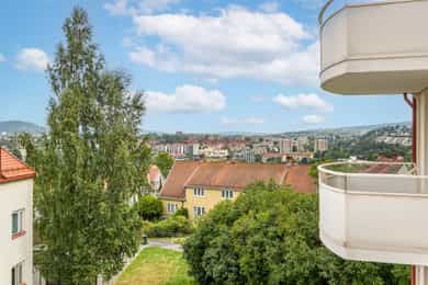 Pen og gjennomgående 3 (4)-roms med stor solrik balkong og utsikt - Bad fra 2015 - Separat kjøkken - Peisovn