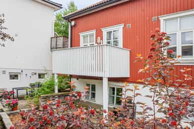 Leiligheten har en egen separat inngang, med få trappetrinn opp. Det er egen biloppstillingsplass på fremsiden av bygget med enkel adkomst til leiligheten, videre er en koselig felles bakhage til glede for beboerne. Inngangspartiet har en hyggelig terrasse mot øst på 8 kvm, med plass til et hyggelig kafesett. Vel inne er det en romslig gang med plass til å henge fra seg yttertøyet i garderobeskap. Åpen løsning mellom stue og kjøkken gir fin romflyt, stuen har laminat på gulv og hvite overflater. Utforming gjør det enkelt å møblere med både sofagruppe og spisebord. Spisebordet kan enkelt plasseres i tilknytning til både stue og kjøkken, som gir et naturlig skille. En terrassedør med glassfelt fører ut til en vestvendt balkong på 5 kvm. Kjøkkenet er funksjonelt plassert i en vinkel, delvis adskilt fra sofahjørnet. Innredningen har slette hvite fronter og laminat benkeplate med nedfelt oppvaskkum. Over benk er det mosiakkfliser. Hvitevarene er integrerte og består av komfyr, platetopp, oppvaskmaskin og er frittstående kombiskap kjøl/frys. Badet er av eldre dato, med tidløse overflater og nyere baderomsplater. Innredningen består av servant med tilhørende skuffeseksjon, speil, toalett og dusjkabinett som ble byttet i 2014. Det er røropplegg for vaskemaskin. Leiligheten har et stort soverom, med lyse overflater i panel og laminat på gulv.* Rommet har plass til dobbeltseng, nattbord og stort garderobeskap. Soverommet vender mot bakgården. Innvendige overflater: - Vegger med panel. - Gulv med laminat. - Malt panel i himling. Tekniske installasjoner: - Vannledninger i utførelse kobberrør. - Plast avløp. - Bolig ventilert ved tilluftventiler i yttervegger, mekanisk avtrekk på baderom. - Boligen er elektrisk oppvarmet. - Varmefordeling med panelovner. - VV-bereder, 120 liter, montert i benkeskap kjøkken. - Underskap i leiligheten, automatsikringer. Hovedskap i fellesarealer. - Røykvarslere montert, håndslukker tilgjengelig.